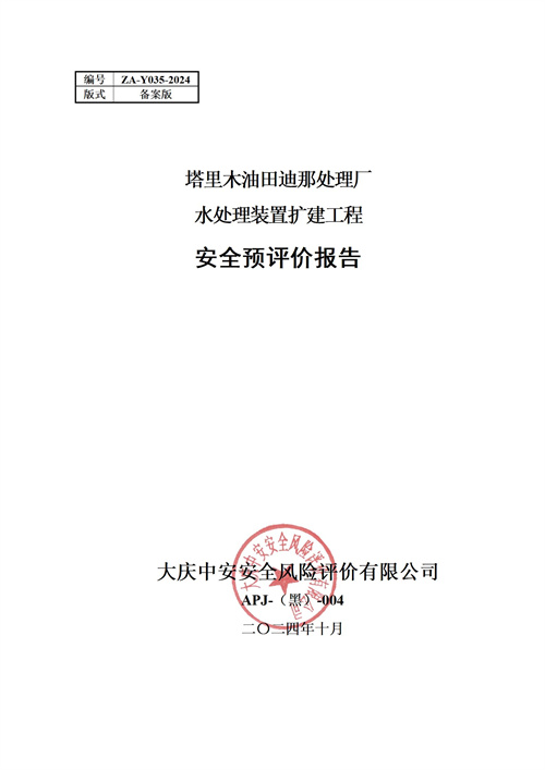 塔里木油田迪那處理廠水處理裝置擴(kuò)建工程安全預(yù)評價報告 |
