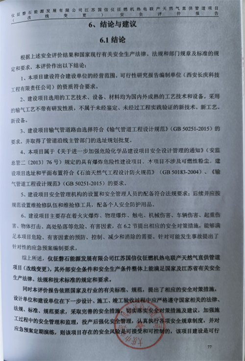 儀征磐石能源發(fā)展有限公司江蘇國信儀征燃機熱電聯(lián)產(chǎn)天然氣直供管道項目(改線變更),其外部安全條件和安全生產(chǎn)條件整體上能滿足國家及江蘇省有關安全生產(chǎn)法律、法規(guī)和技術(shù)標準的規(guī)定和要求 |