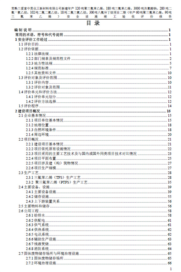 常熟三愛富中昊化工新材料有限公司新建年產(chǎn)120噸聚三氟苯乙烯、180噸三氟苯乙烯、3000噸次氯酸鈉、280噸二氟一氯乙烷、102噸二氟二氯乙烷、18噸二氟三氯乙烷、300噸八氟環(huán)丁烷項目二期(年產(chǎn)60噸聚三氟苯乙烯、90噸三氟苯乙烯)安全設(shè)施竣工驗收評價報告 |