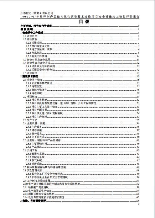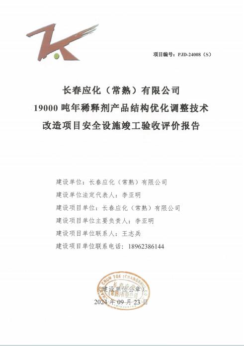 長春應(yīng)化(常熟)有限公司19000噸年稀釋劑產(chǎn)品結(jié)構(gòu)優(yōu)化調(diào)整技術(shù)改造項(xiàng)目安全設(shè)施竣工驗(yàn)收評(píng)價(jià)報(bào)告