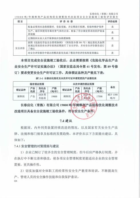 長春應(yīng)化(常熟)有限公司19000噸/年稀釋劑產(chǎn)品結(jié)構(gòu)優(yōu)化調(diào)整技術(shù)改造項(xiàng)目具備安全設(shè)施竣工驗(yàn)收條件,符合安全生產(chǎn)條件。 |
