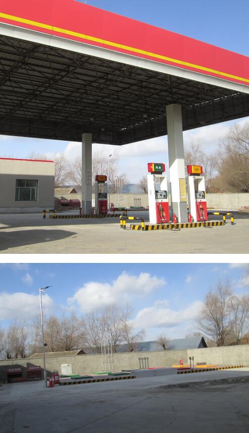 1)原油罐清洗,檢測合格后拆除,吊裝外運(yùn);新建非承重SF罐區(qū)1座,設(shè)置30m3雙層汽油儲罐3臺、30m3雙層柴油儲罐2臺,油罐采用混凝土防滲操作井及非承重井蓋10套;工藝管線拆除并重新敷設(shè),加油管線采用導(dǎo)靜電雙層熱塑性塑料,其他工藝管線采用20#無縫鋼管;設(shè)置卸油和分散式加油油氣回收系統(tǒng);新建6孔成品卸油口箱1座(底部防滲)。 2)利舊改建站房1座,建筑面積161.12㎡。 3)罩棚由專業(yè)公司進(jìn)行檢測合格后利舊,螺栓球網(wǎng)架結(jié)構(gòu),水平投影面積429㎡,凈空高度5.5m。 4)修復(fù)4座加油島,新建防撞柱8個;檢測合格利舊4臺雙槍單油品自吸式汽油加油機(jī)(汽油槍帶油氣回收功能)、2臺雙槍單油品自吸式柴油加油機(jī);新建混凝土防滲加油機(jī)底座。 5)新增雙層油罐及雙層管線滲漏監(jiān)測系統(tǒng);新建緊急切斷系統(tǒng)、卸油靜電接地系統(tǒng)、人體靜電釋放裝置、聲光報警; 6)修復(fù)硬化地面,面積200㎡;利舊高2.2米實(shí)體圍墻148m。 |