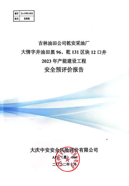 吉林油田公司乾安采油廠大情字井油田黑96、乾131區(qū)塊12口井2023年產(chǎn)能建設(shè)工程安全預(yù)評價(jià)報(bào)告