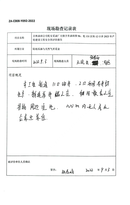 吉林油田公司乾安采油廠大情字井油田黑96、乾131區(qū)塊12口井2023年產(chǎn)能建設(shè)工程安全預(yù)評價(jià)報(bào)告 |