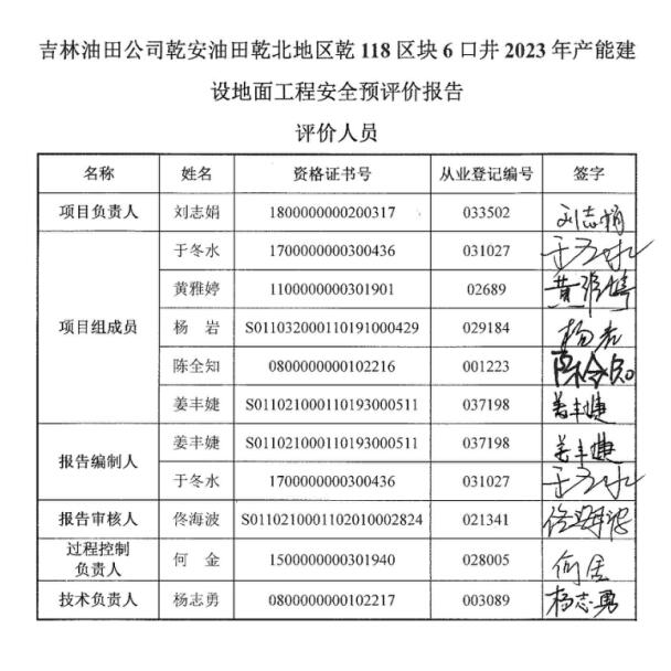 吉林油田公司乾安油田乾北地區(qū)乾118區(qū)塊6口井2023年產(chǎn)能建設(shè)地面工程安全預(yù)評價報告