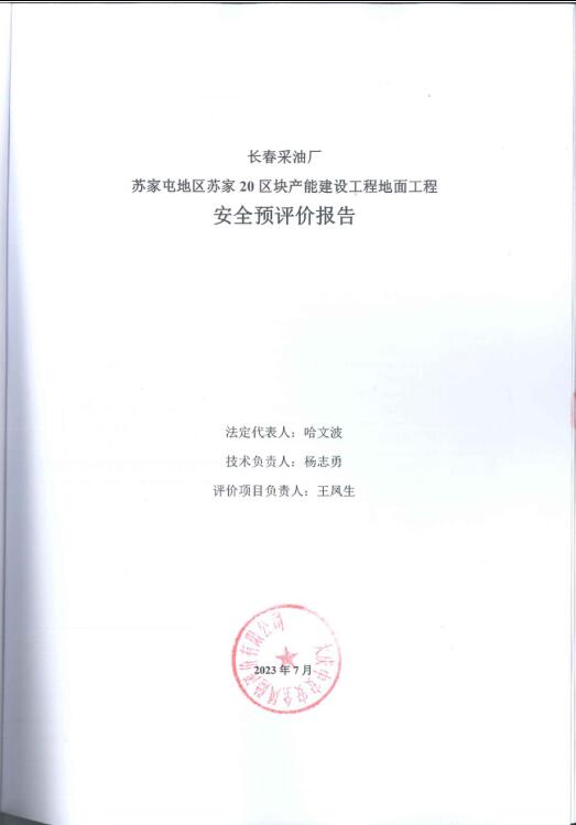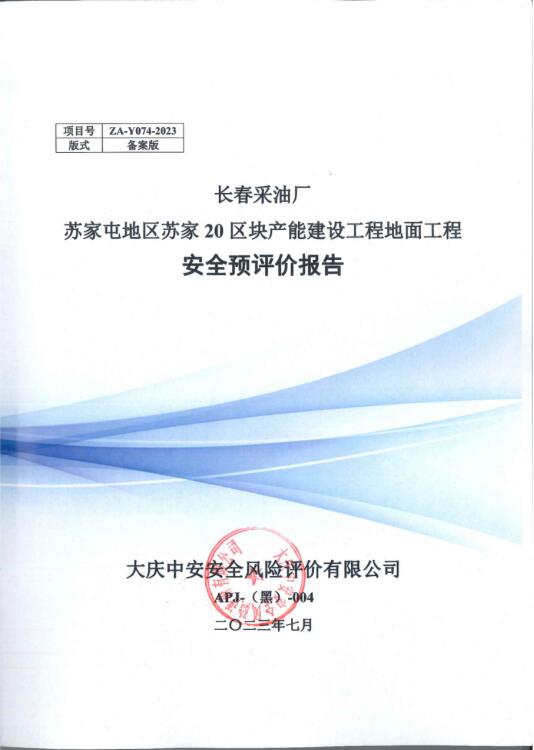 長春采油廠蘇家屯地區(qū)蘇家20區(qū)塊產能建設工程地面工程安全預評價報告