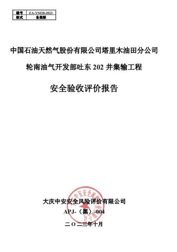 中國石油天然氣股份有限公司塔里木油田分公司輪南油氣開發(fā)部吐東202井集輸工程 安全驗收評價