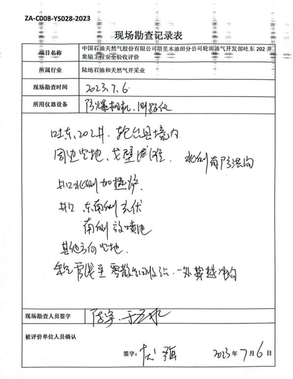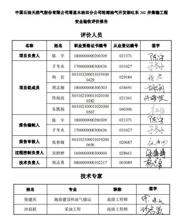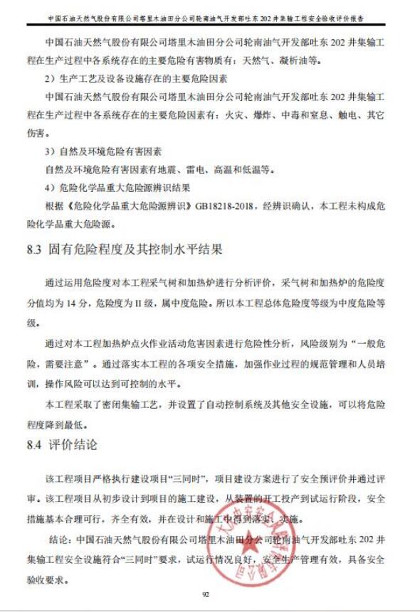中國石油天然氣股份有限公司塔里木油田分公司輪南油氣開發(fā)部吐東202井集輸工程安全驗收評價 |