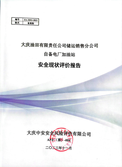 大慶油田有限責(zé)任公司儲(chǔ)運(yùn)銷售分公司自備電廠加油站安全現(xiàn)狀評(píng)價(jià)報(bào)告 |