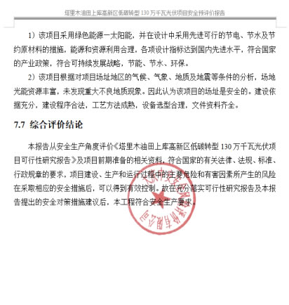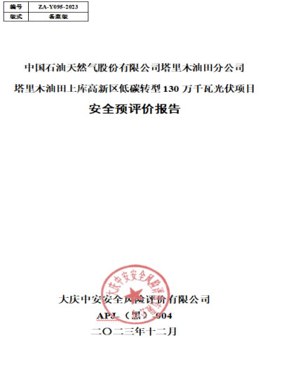 中國石油天然氣股份有限公司塔里木油田分公司塔里木油田上庫高新區(qū)低碳轉(zhuǎn)型130萬千瓦光伏項目安全預(yù)評價報告 |