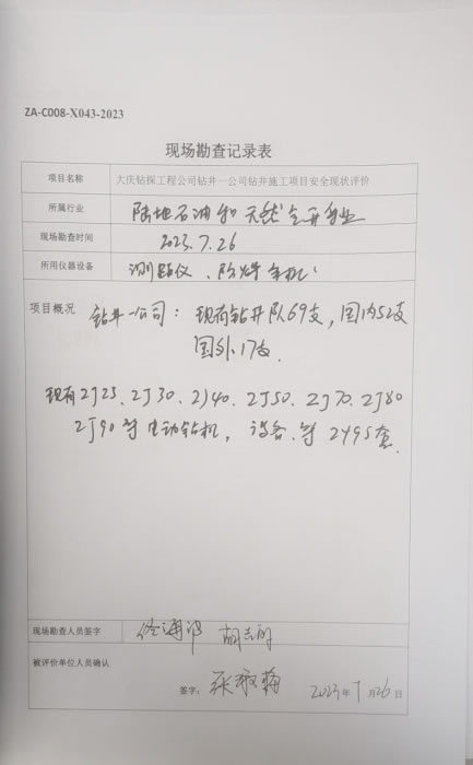 大慶鉆探工程公司鉆井二公司鉆井施工項目安全現(xiàn)狀評價報告信息公示表