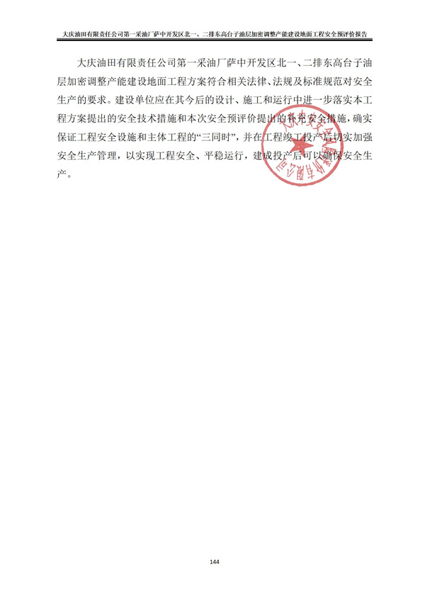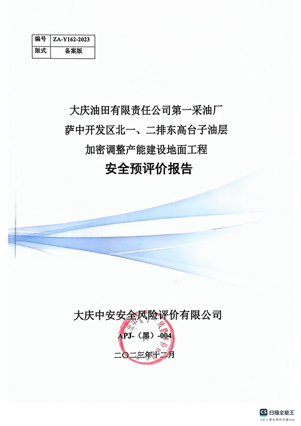 大慶油田有限責(zé)任公司第一采油廠薩中開(kāi)發(fā)區(qū)北一、二排東高臺(tái)子油層加密調(diào)整產(chǎn)能建設(shè)地面工程安全預(yù)評(píng)價(jià)報(bào)告 |