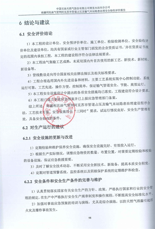 中國(guó)石油天然氣股份有限公司塔里木油田分公司南疆利民油氣管網(wǎng)阿克蘇市管道占?jí)杭拜敋饽┱倦[患治理安全驗(yàn)收評(píng)價(jià)報(bào)告  |