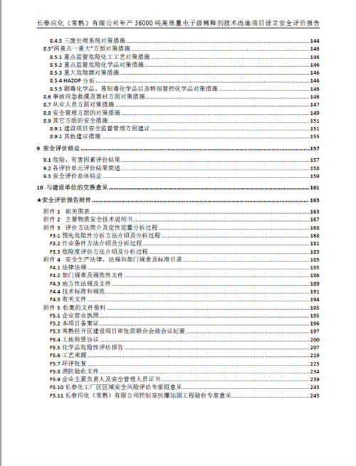 長春應化(常熟)有限公司年產(chǎn)36000噸高質(zhì)量電子級稀釋劑技術改造項目設立安全評價報告 |