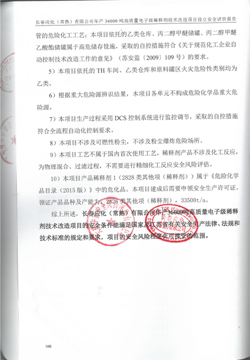 長春應化(常熟)有限公司年產(chǎn)36000噸高質(zhì)量電子級稀釋劑技術改造項目設立安全評價報告