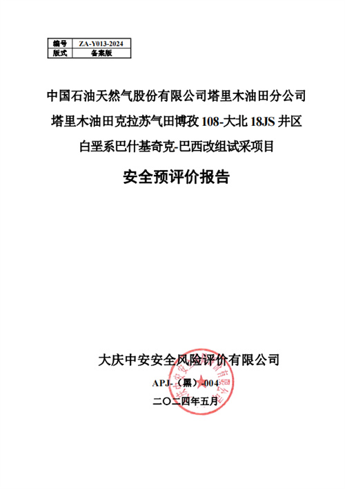 中國石油天然氣股份有限公司塔里木油田分公司塔里木油田克拉蘇氣田博孜108-大北18JS井區(qū)白堊系巴什基奇克-巴西改組試采項(xiàng)目安全預(yù)評價報(bào)告