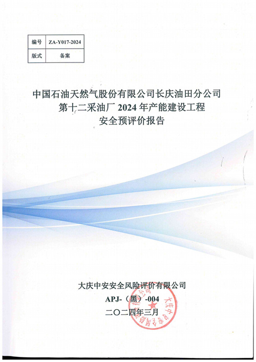 中國石油天然氣股份有限公司長慶油田分公司第十二采油廠2024年產(chǎn)能建設(shè)工程安全預(yù)評價報告 |