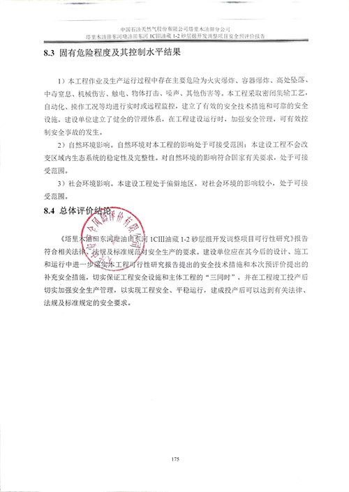 中國石油天然氣股份有限公司塔里木油田分公司塔里木油田東河塘油田東河1CⅢ油藏1-2砂層組開發(fā)調(diào)整項目安全預評價報告 |