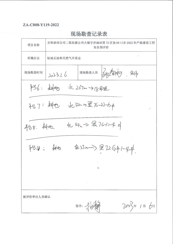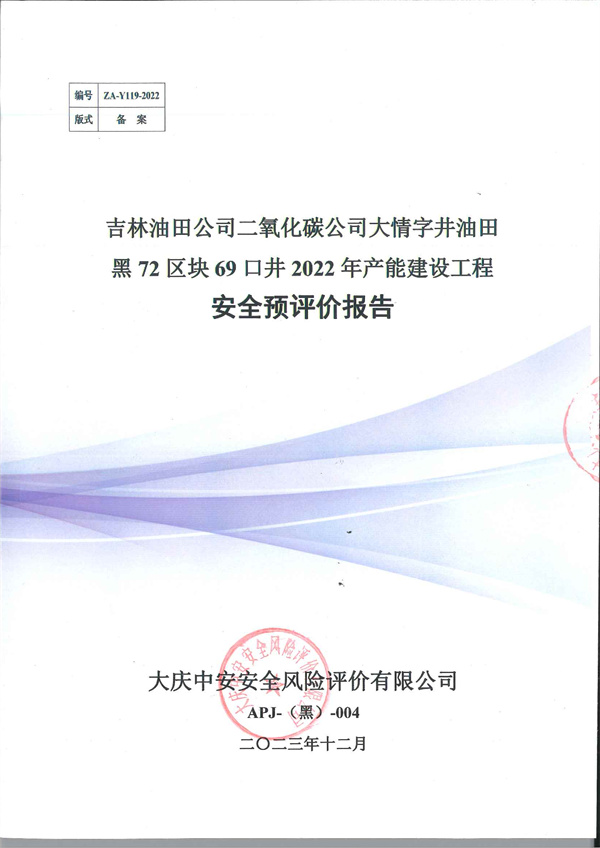 吉林油田二氧化碳開發(fā)公司大情字井油田黑72區(qū)塊69口井2022年產(chǎn)能建設(shè)工程安全預(yù)評價(jià)報(bào)告 |
