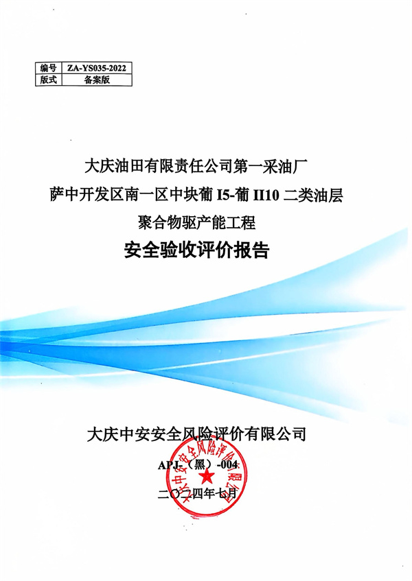 大慶油田有限責(zé)任公司第一采油廠薩中開發(fā)區(qū)南一區(qū)中塊葡I5-葡II10二類油層聚合物驅(qū)產(chǎn)能工程安全驗(yàn)收評(píng)價(jià)報(bào)告