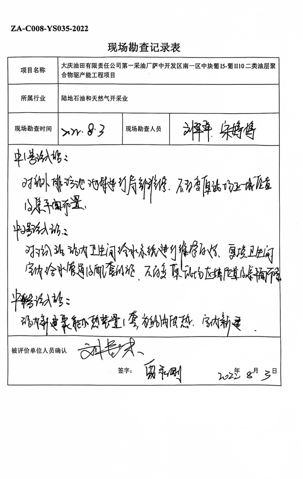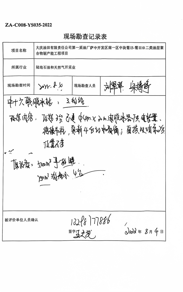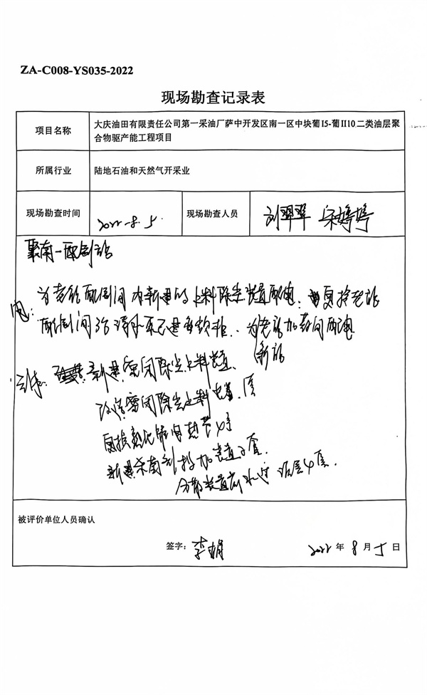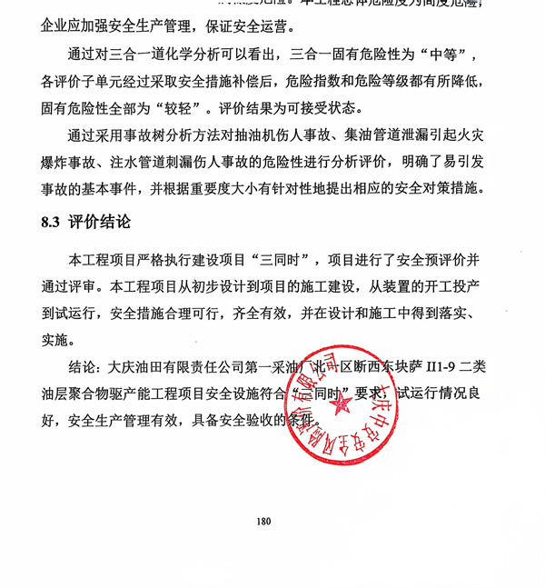 大慶油田有限責(zé)任公司第一采油廠薩中開發(fā)區(qū)南一區(qū)中塊葡I5-葡II10二類油層聚合物驅(qū)產(chǎn)能工程安全驗(yàn)收評(píng)價(jià) |