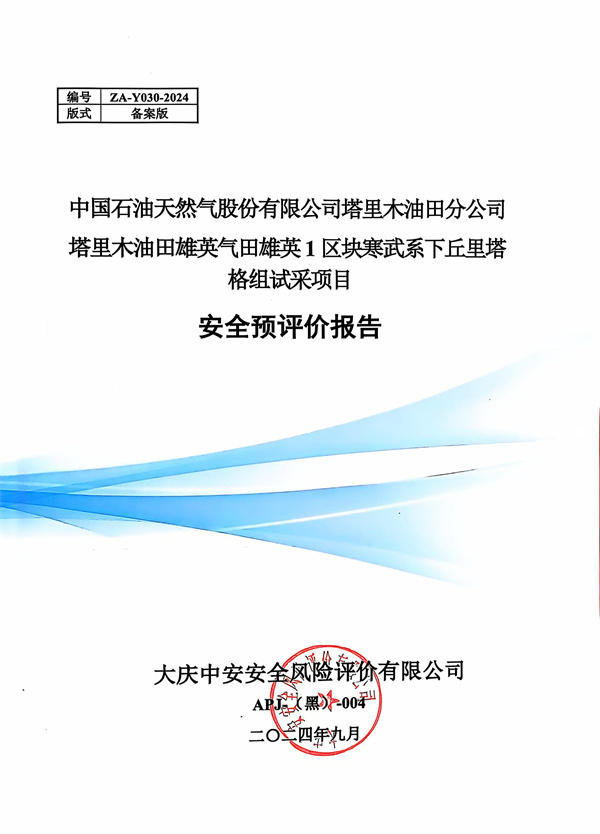 中國石油天然氣股份有限公司塔里木油田分公司塔里木油田雄英氣田雄英1區(qū)塊寒武系下丘里塔格組試采項(xiàng)目安全預(yù)評價(jià)報(bào)告 |